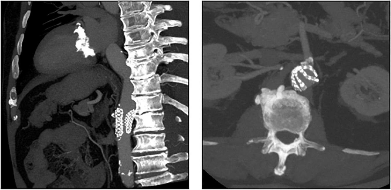 Out of 54 TVEM patients, none died during the index procedure, in-hospital mortality was 7.4% (4 patients). We tried to contact all patients which were identified as still alive and managed to get in contact with 22 patients. Out of these 22 patients, ten patients gave consent to undergo follow-up imaging by TTE and CT. Table 5 provides detailed information on the patients included in the imaging sub-study. In most cases, the embolized valves could not be sufficiently visualized by transthoracic echocardiography (TTE). TTE revealed normal function of all secondary THV in the aortic root.