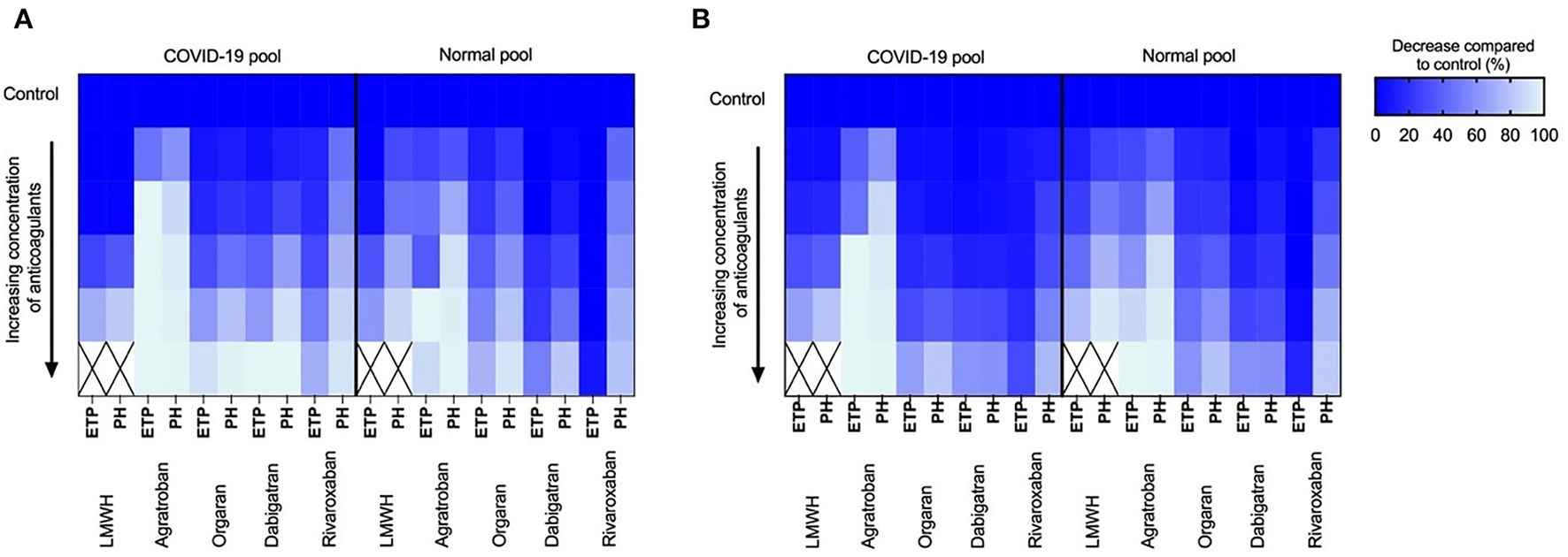 In the second part of the study a switch to in vitro experiments was made. For this purpose a separate COVID-19 pooled plasma was created from patients included in the overarching MaastrICCHt cohort. The pooled plasma had an average LWMH level of 0.3 U/ml was prepared by combining plasma of 40 patients with severe COVID-19 admitted to the ICU.