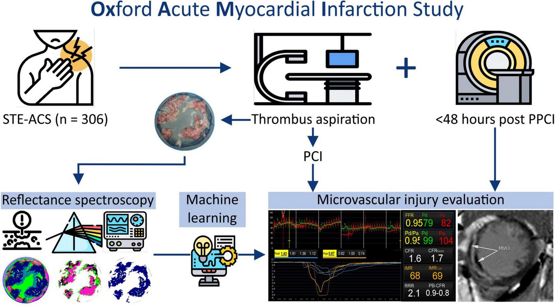 Kotronias RA, Fielding K, Greenhalgh C, Lee R, Alkhalil M, Marin F, Emfietzoglou M, Banning AP, Vallance C, Channon KM and De Maria GL (2022) Machine learning assisted reflectance spectral characterisation of coronary thrombi correlates with microvascular injury in patients with ST-segment elevation acute coronary syndrome. Front. Cardiovasc. Med. 9:930015. doi: 10.3389/fcvm.2022.930015