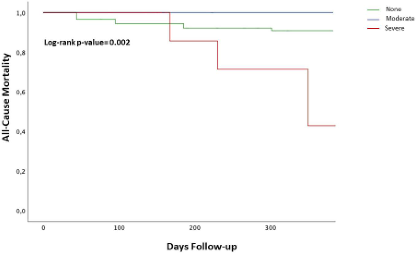 Descriptive statistics are reported as mean and SD for normally distributed continuous variables, as median and 25–75th percentile otherwise. Absolute and relative frequencies are reported for categorical variables. For continuous variables, the comparisons were done either with ANOVA or with a non-parametric test (Kruskal–Wallis test). For categorical variables, comparisons among groups were done with the chi-squared tests or Fisher’s exact tests. All-cause death was reported using the Kaplan–Meier estimates together with their 95% CI. The Wilcoxon signed rank sum test was used for the comparison of echo parameters in paired analyzes. The cumulative incidences of clinical events at follow-up were assessed with the Kaplan–Meier method and log-rank test. A two-sided P-value of < 0.05 was considered statistically significant. Statistical analysis was performed using SPSS software version 23 (IBM Incorporation, Armonk, NY, United States).