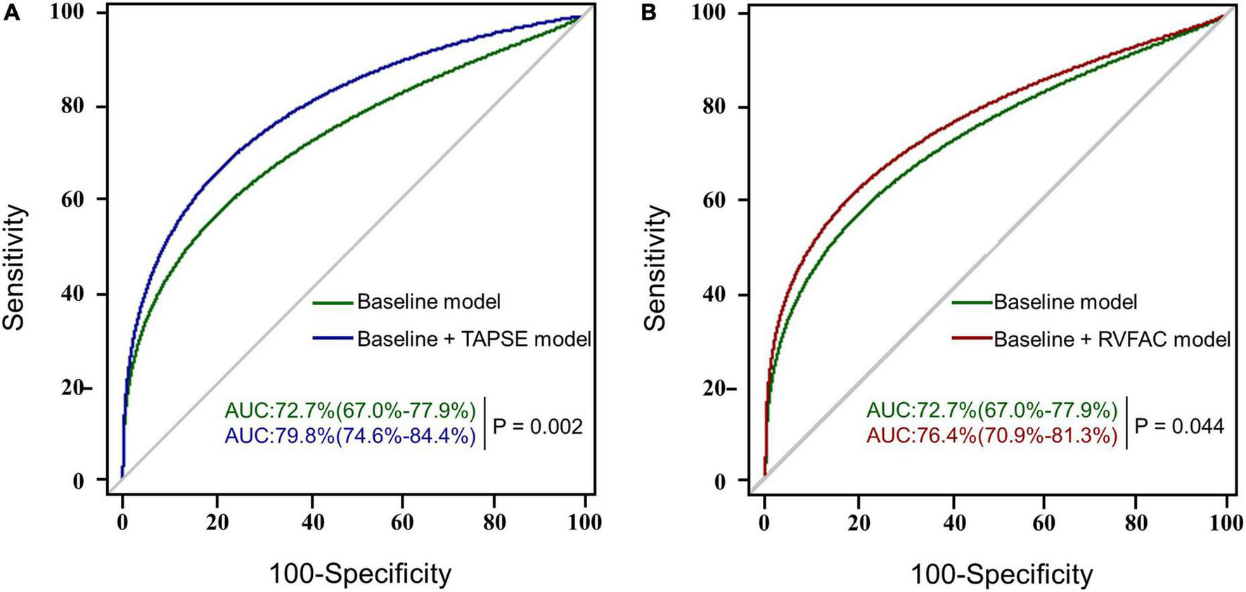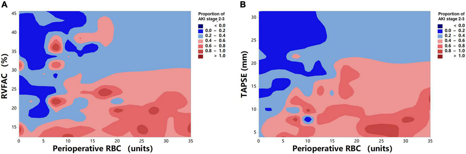 Due to the complex structure of the RV, cardiovascular MR (CMR) is considered the current reference standard for quantification of RV volume and function (14, 15). However, CMR is high cost and long image acquisition time are impediments to its widespread clinical use. In addition, some patients with end-stage heart failure before HTx cannot withstand long-term CMR examinations. Transthoracic echocardiography is a first-line, non-invasive method for evaluating RV function (1). Although tricuspid annular plane systolic excursion (TAPSE) and RV fractional area change (RVFAC) have been routinely assessed RV function, their value in predicting the occurrence of moderate to severe AKI after HTx remains unknown.