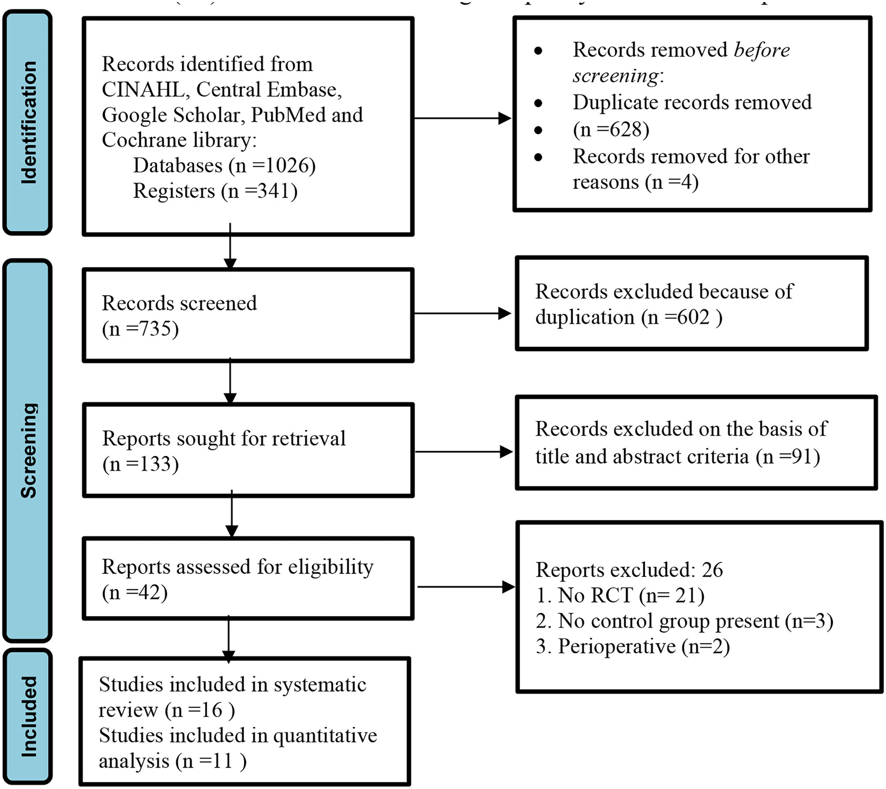 Data were independently extracted by two reviewers, SK and PA, on characteristics of study location, year of study, participants, study duration, sample size, male-female ratio, inclusion and exclusion criteria, details of intervention given to experimental groups and control groups, duration of study, outcome measures, and results of study. The data were rechecked by a third reviewer, SP, and all disagreements and discrepancies were resolved by consensus.