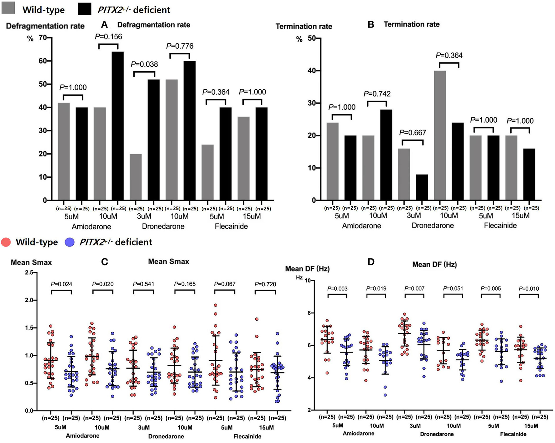 Compared with wild-type, the PITX2+/− deficient AF model exhibited different electrophysiology and AF wave dynamics.