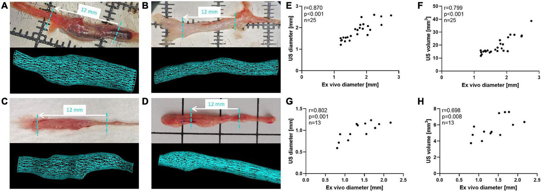 All Models Show a High Correlation Between 3D US Measurements of Abdominal Aortic Aneurysm Volume and Maximum Aortic Diameter Which Is in Good Agreement With ex vivo Aortic Diameter Assessment