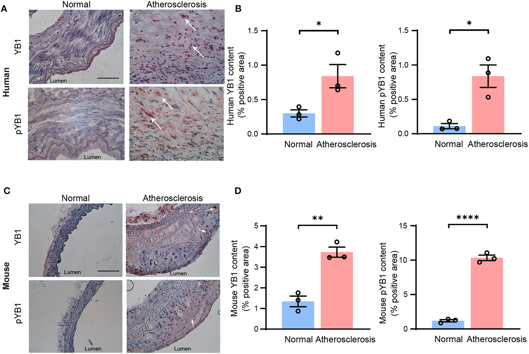 YB1 and phosphorylated YB1 were elevated in atherosclerotic plaques