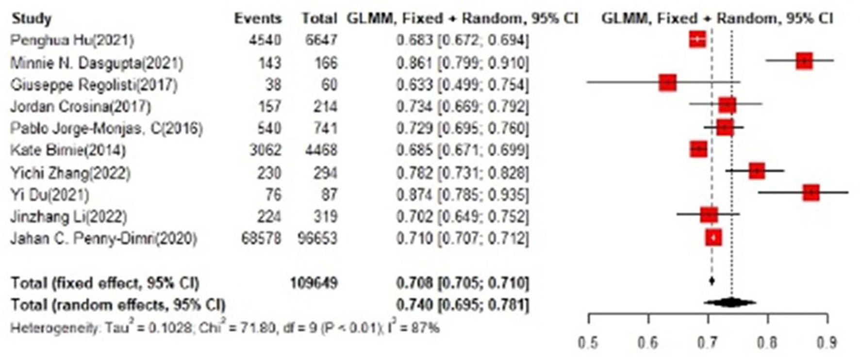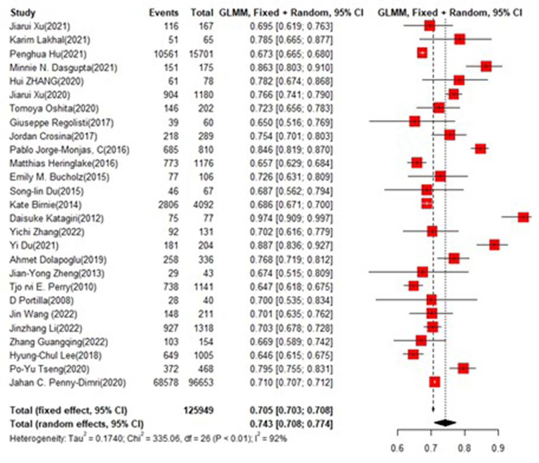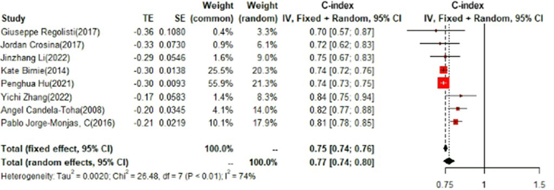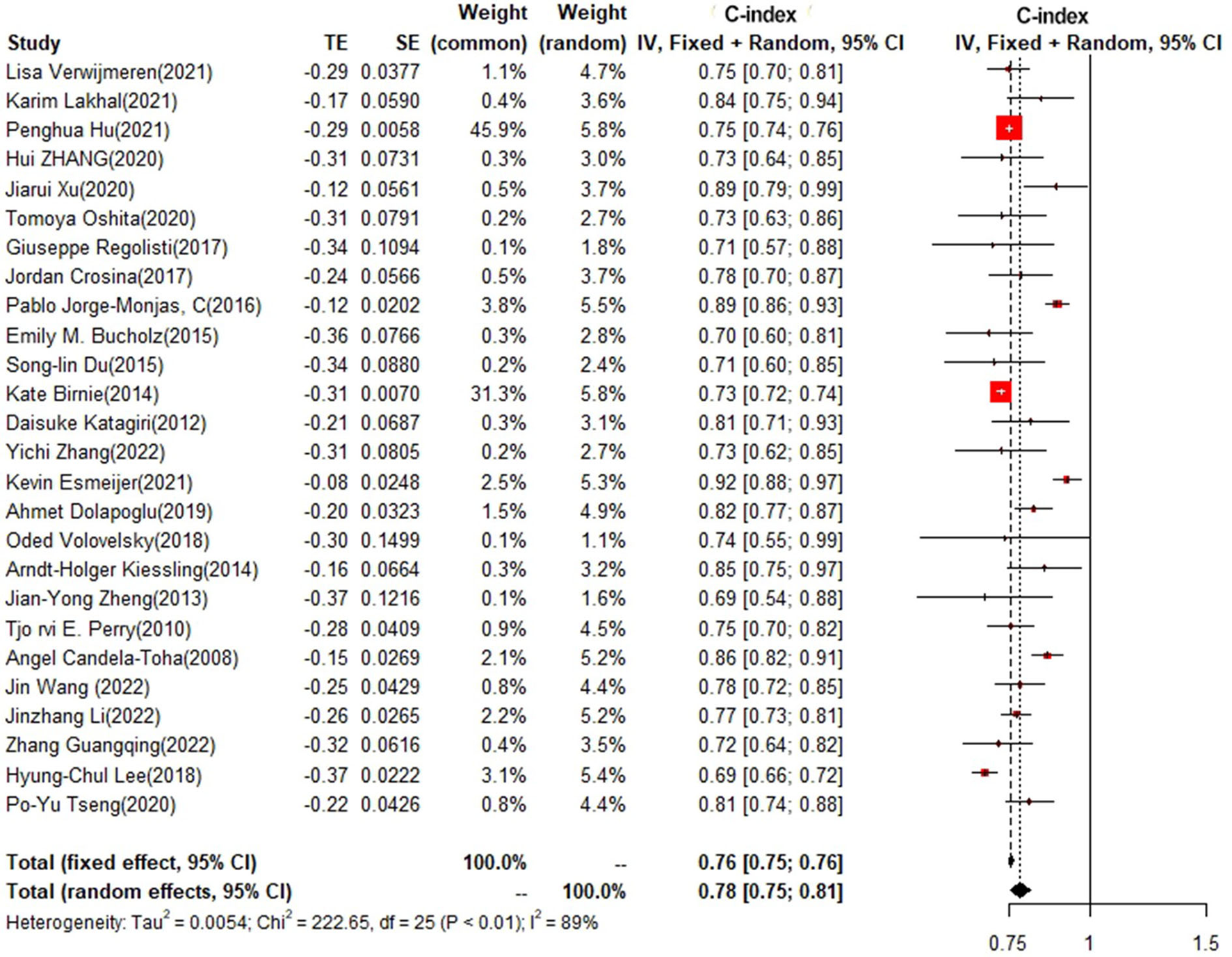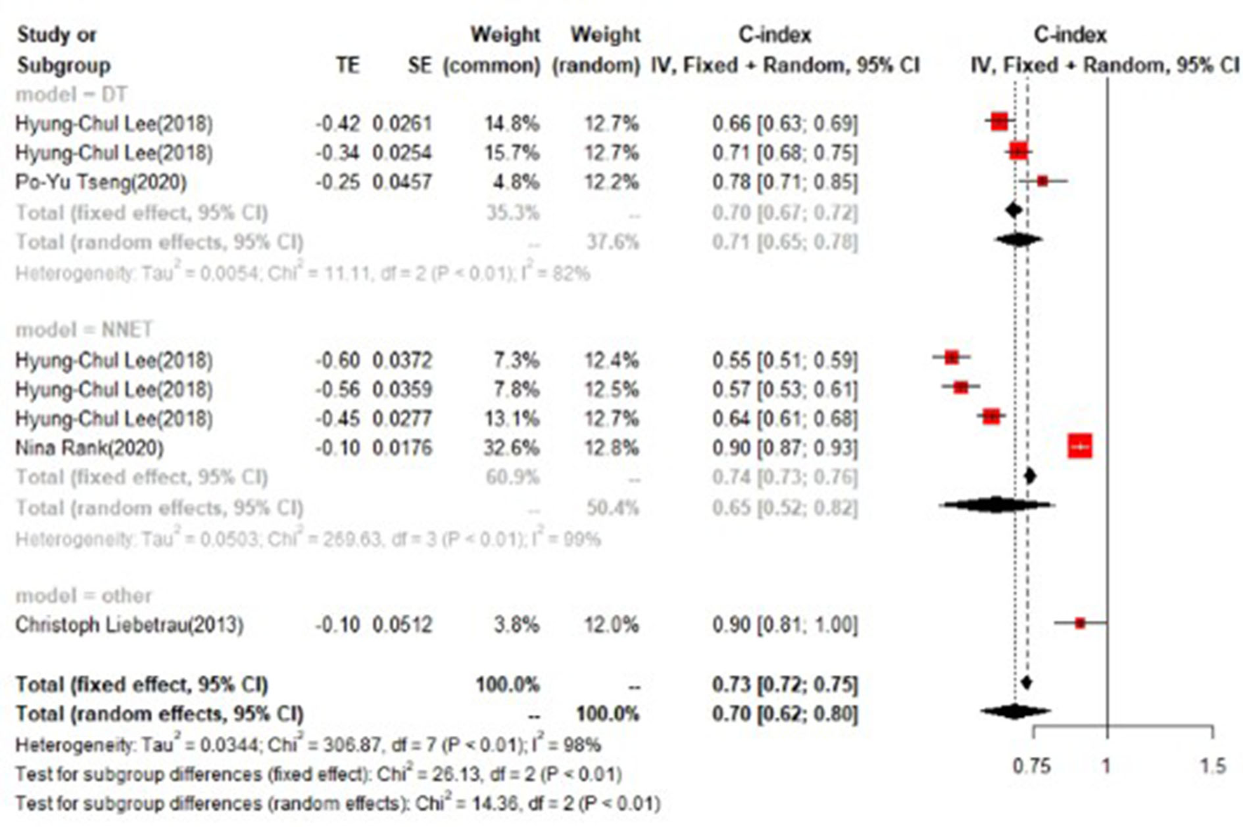 We calculated and reported descriptive statistics to summarize the characteristics of the models. For prediction models that were examined in more than two independent datasets (excluding the model development dataset), a random-effect meta-analysis was performed to estimate the performance and accuracy. Prediction models, which were internally validated through bootstrapping or cross-validation and were externally validated in only two independent datasets, were also considered. We followed a recently published framework of meta-analysis for prediction models. If a measure of uncertainty (standard error or 95% confidence interval) was not available for the mean C-index, a formula was used to approximate the standard error of the mean C-index based on the number of events and number of participants. All data analyses were performed using the R software (Version 4.1.1).