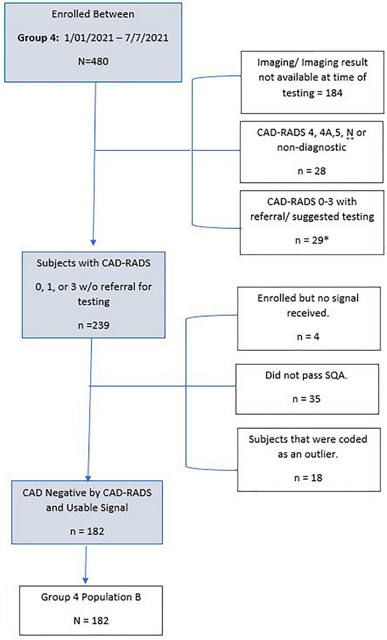 | IDENTIFY Group 4b | Subjects with CCTA, CADRADs 0–3, not referred for further testing | 247 | ✓ | ||||