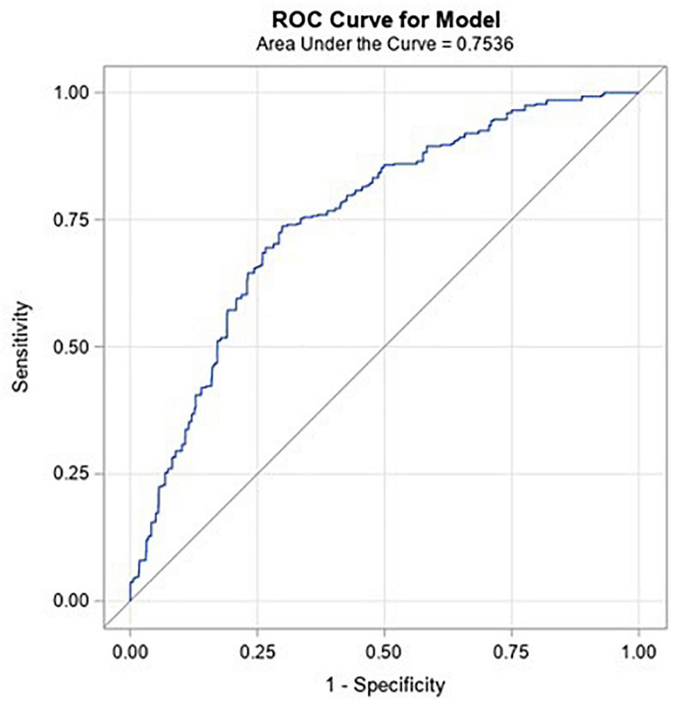The performance of the CAD Model was tested on 391 subjects from IDENTIFY Group 2 (sensitivity) and IDENTIFY Group 4b (specificity). The CAD Model had an AUC of 0.75 (95% CI: 0.70, 0.80) on both genders. The AUC for males and females were 0.71 (95% CI: 0.64, 0.78) and 0.76 (95% CI: 0.68, 0.84), respectively. Figure 3 shows the receiver operating characteristic (ROC) curves of the model for the entire validation set (both genders, N = 391), males (N = 193), and females (N = 198).