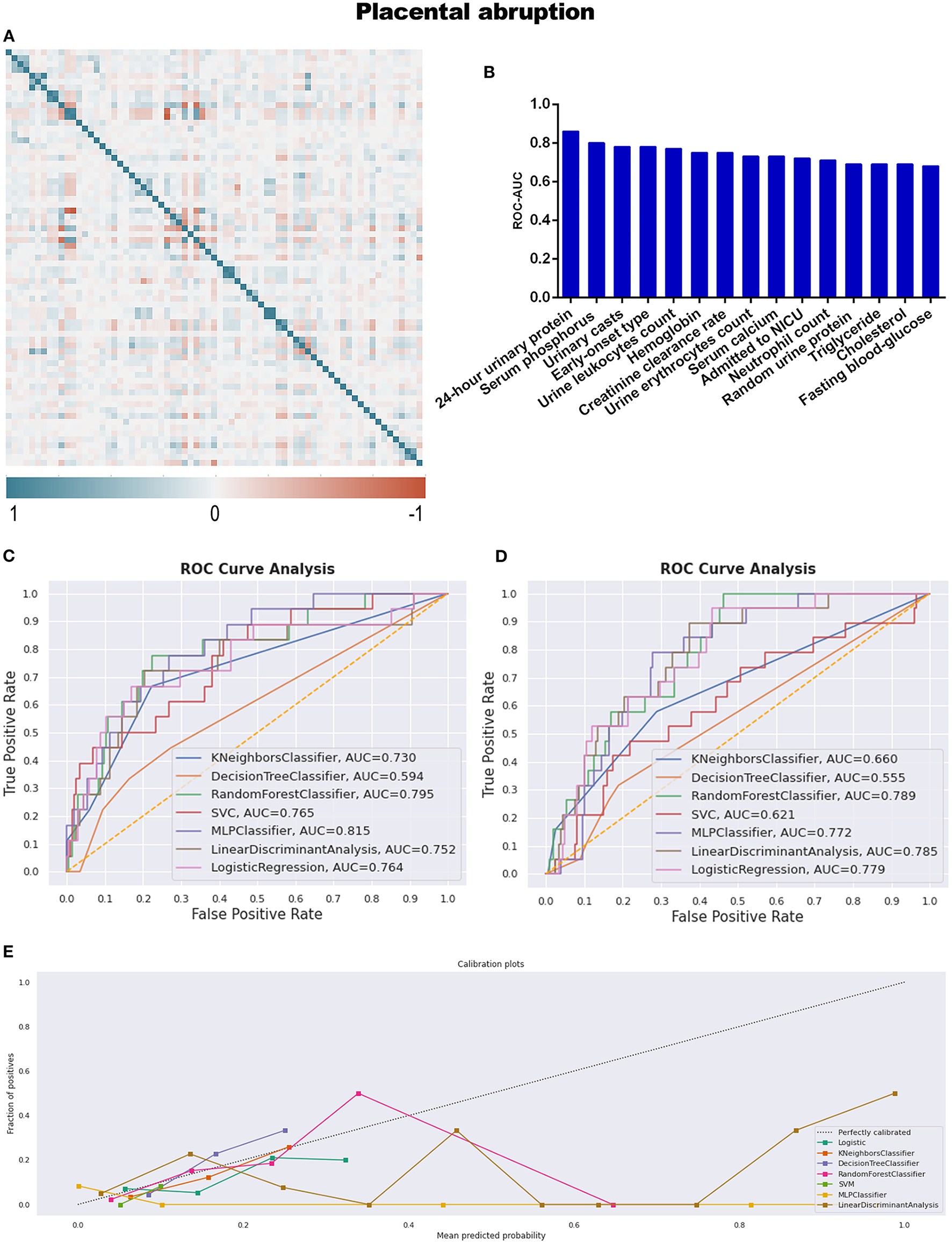 The traditional predictive model assisting clinical decision-making for binary outcomes is logistic regression (LR). This kind of regression-type modeling is mainly based on assumptions and probability calculations, and the interpretation of models specified by artificial intervention and background knowledge is quite essential (5). Nowadays, “machine learning” (ML) has become a prevalent approach for modeling, encompassing a variety of algorithmic strategies (6). It is claimed that ML models learn from data directly and automatically with highly flexible algorithms. With increasing computational power, the capability of ML-based predictive models has vastly expanded, providing an opportunity for accurate prediction from voluminous electronic medical records (7). As a matter of fact, the distinction between LR and ML is blurry. “Continuum” may be a more appropriate phrase to describe their relationship (8). Though the algorithmic flexibility promises ML to perform better over traditional statistical modeling on handling a large number of data, which may be especially preferred by preeclampsia, with heterogeneous pathophysiology and clinical presentation (9), the fair comparison between ML and LR is still sparsely exploited. In other words, the reliability of different models performed on a certain type of data or a certain sample size still needs assessment. To date, limited research studies focused on the development of ML models for preeclampsia predictive tasks, which mainly involved early detection of preeclampsia (10–14), exploring identified biomarkers (15), or assessment of subsequent cardiovascular risk (16), while there is still no research designed to predict adverse pregnancy outcomes.