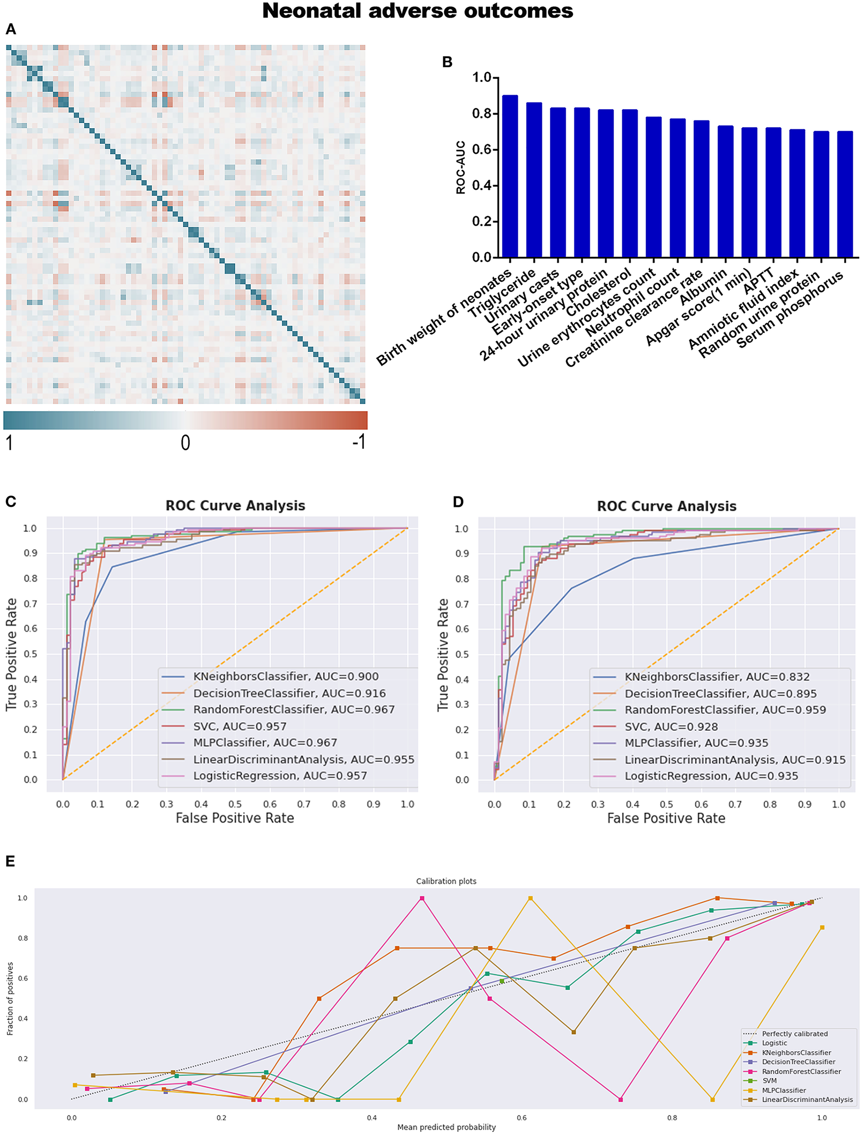 Recently, early screening models with promising biomarkers effectively discriminate suspected women from normal pregnancies (3), while significant heterogeneity can still be revealed when these models are utilized to predict adverse maternal and perinatal outcomes (4). Considering the time span from pre-pregnancy or early pregnancy to the appearance of adverse outcomes, applying short-term predictive models may be more realistic in ruling out the occurrence of adverse events in women with preeclampsia. Furthermore, novel biomarkers that present exciting roles for assisting prediction are still under testing for extensive clinical utility. Therefore, deep mining the application of maternal demographic characteristics, medical history, physical examination, as well as biochemical indicators obtained during antenatal care visits, or even obtained just ahead of confronting pregnancy outcomes, and evaluating the reliability of real-time predictive models developed by these variables, will still be an efficient and economical choice for timely distinguishing adverse outcomes, especially in low-resource settings.