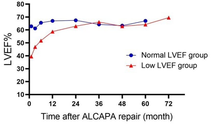 Dynamic change of LVEF after ALCAPA repair. LVEF, left ventricular ejection fraction.