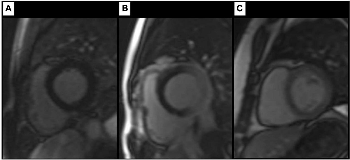 To the best of our knowledge, this is the first study that has systematically analysed the occurrence of specific artefacts in this relatively common form of conduction delay. However, despite the potential utility of our results for routine clinical practice, some limitations need to be considered. First, due to the retrospective design of the study, it was not possible to form different subgroups (LBBB in ischemic or non-ischemic heart disease, LBBB of other aetiology) with sufficiently large numbers of patients for a more differentiated analysis of possible factors influencing dyssynchrony. Comparable studies included groups of 20–43 patients (1, 11, 14, 34). Secondly, and also due to the retrospective design, alternative MRI pulse sequence techniques such as single-shot inversion recovery balanced SSFP or single-shot spoiled GRE sequences could not be evaluated regarding their potential for artefact avoidance. Lastly, the patients in the control group, which was formed for the purpose of analysing occurrence of artefacts in uncompromised conduction, were not age- and sex-matched, hence any differences in global systolic function may also be due to age- or sex- differences alone.
