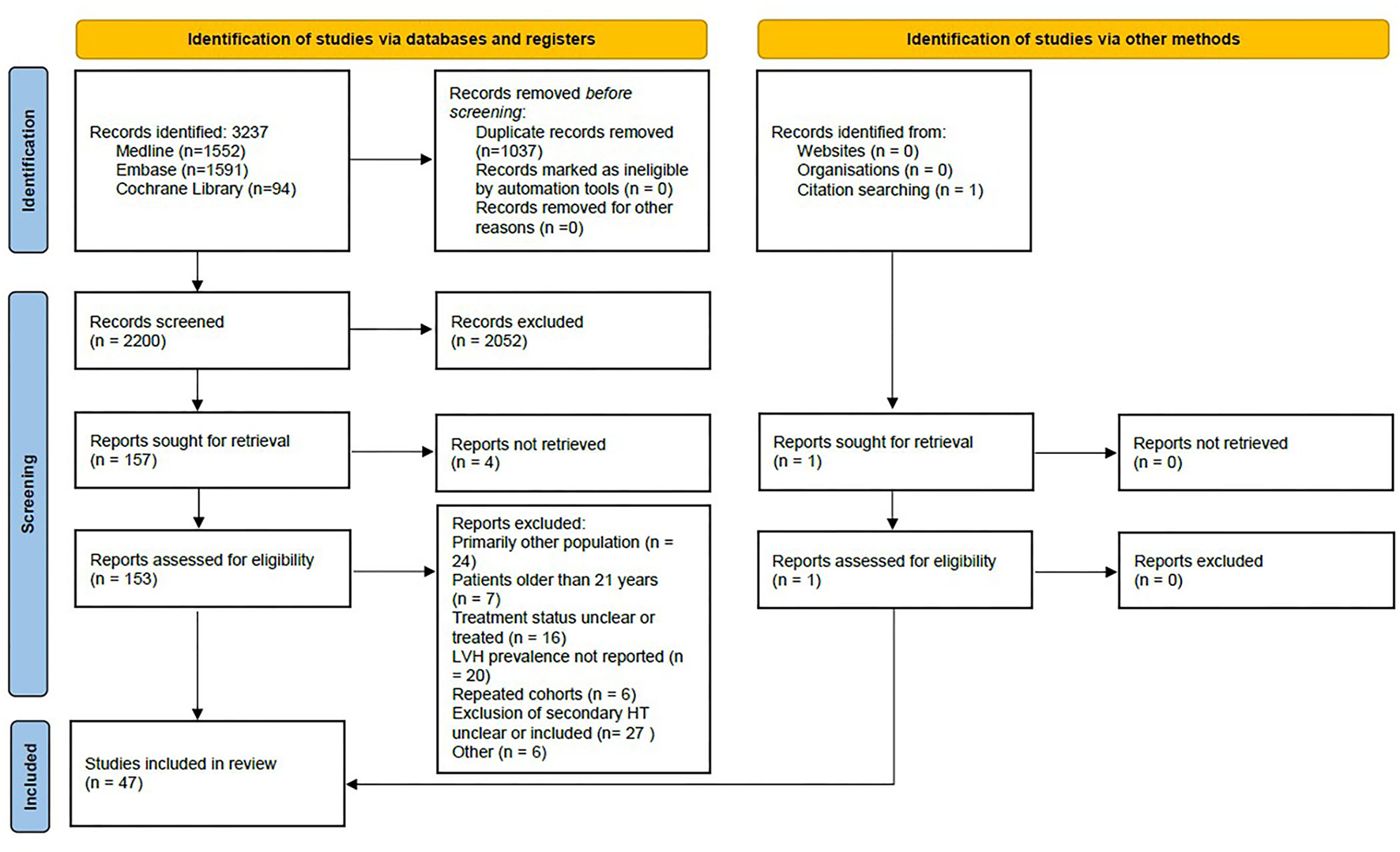 Community studies where the exclusion of secondary causes of HT was not stated.