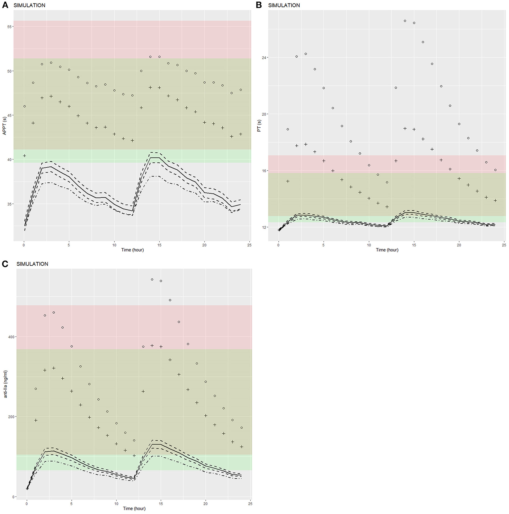 We modeled IVV as exponential error terms on APTT, PT, and anti-FIIa activity. For residual variability, APTT, PT, and anti-FIIa activity all used additive error models.