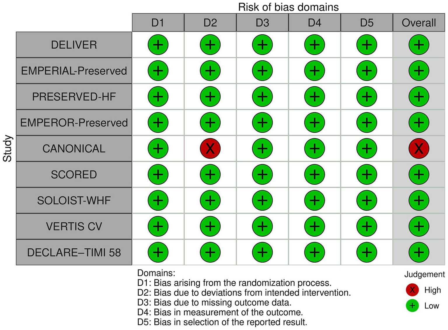 | Characteristics | DELIVER (N = 6,263) | EMPERIAL-Preserved (N = 315) | PRESERVED-HF (N = 324) | EMPEROR-Preserved (N = 5,988) | CANONICAL (N = 82) | SCORED (N = 10,584) | SOLOIST-WHF (N = 1,222) | VERTIS CV (N = 8,246) | DECLARE-TIMI 58 (N = 17,160) |