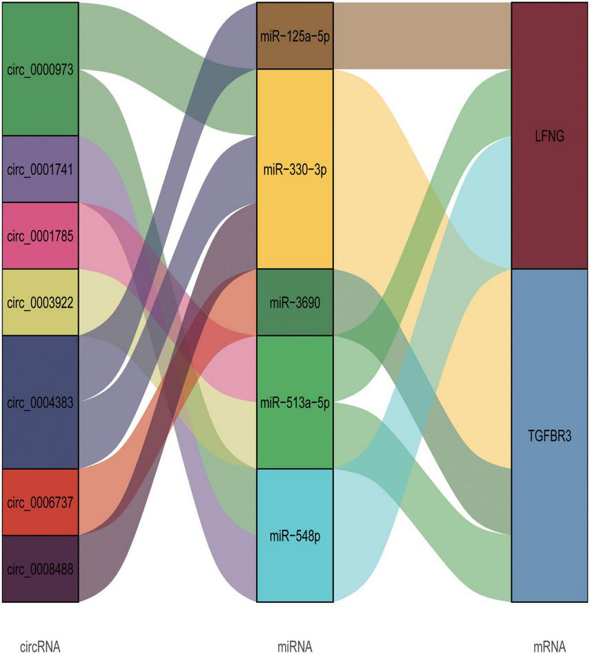 3.4. circRNA-related ceRNA regulatory network construction