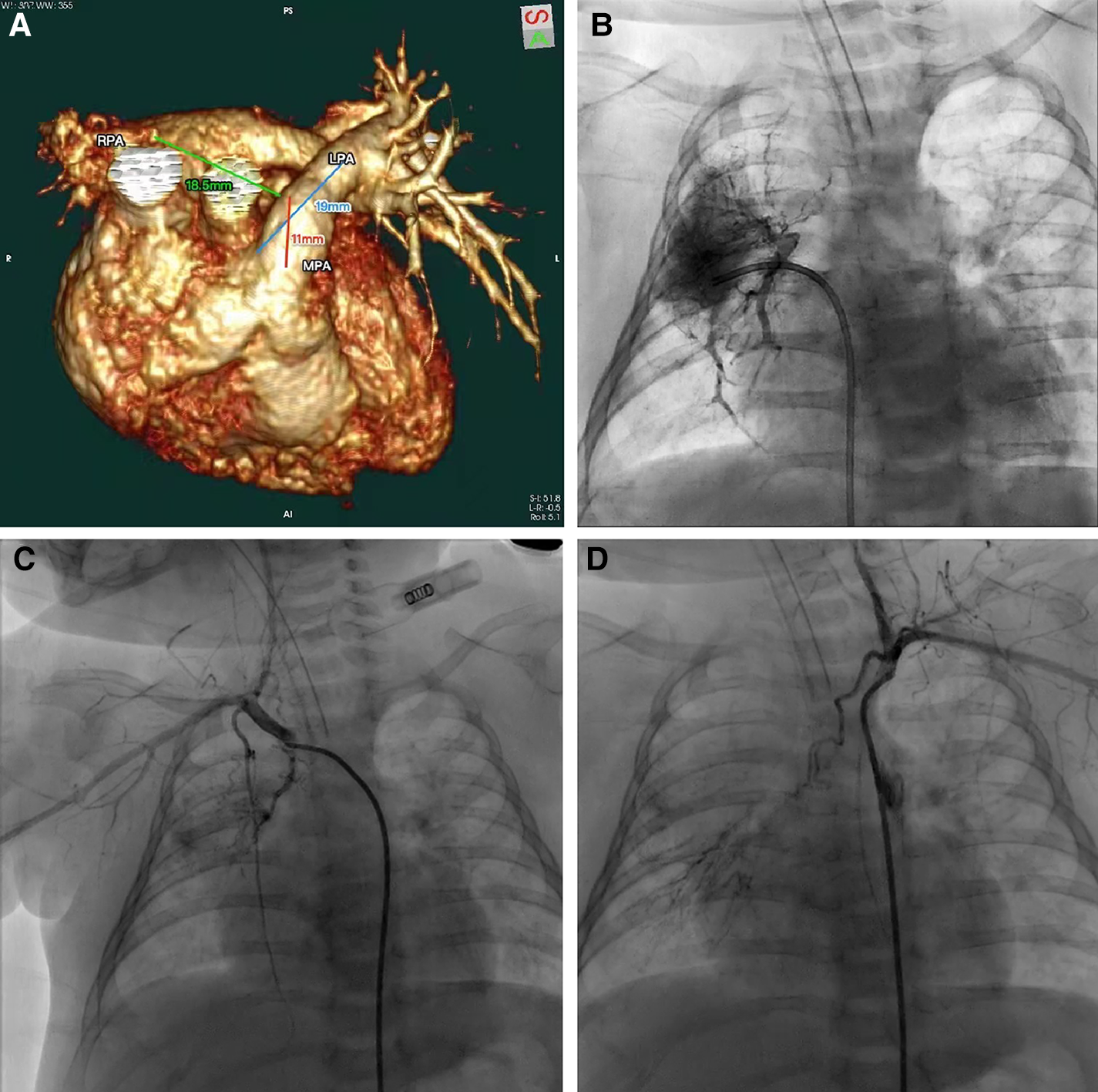 Surgery eventually reconstructed the pulmonary artery with satisfactory morphology and diameters.