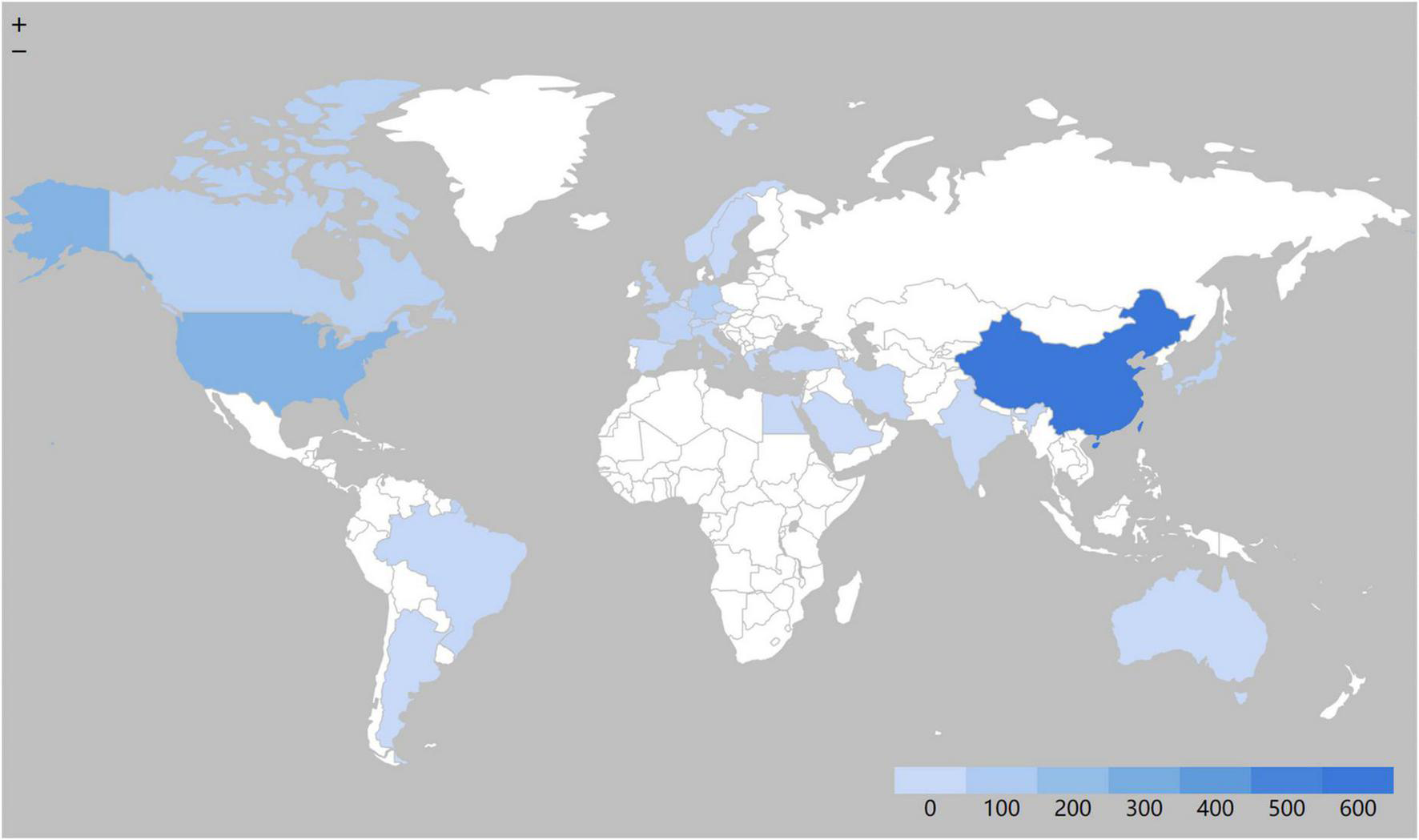 The distribution map of countries/regions.