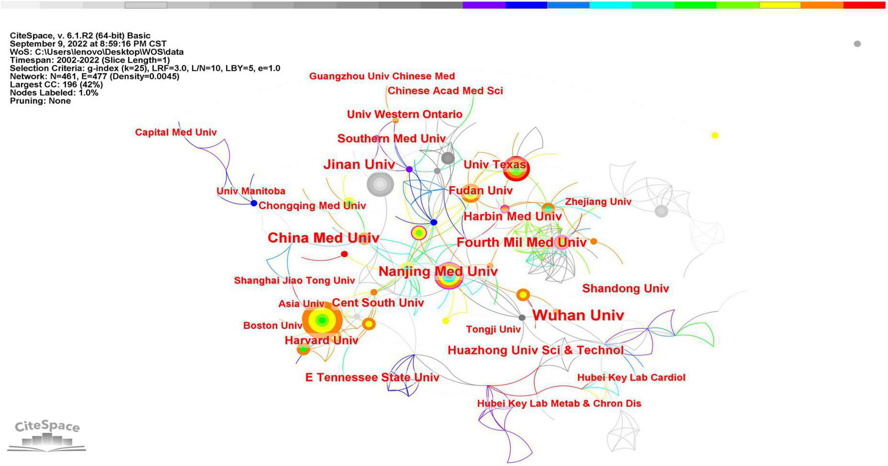 CiteSpace visualization map of institutions related to SIMD.