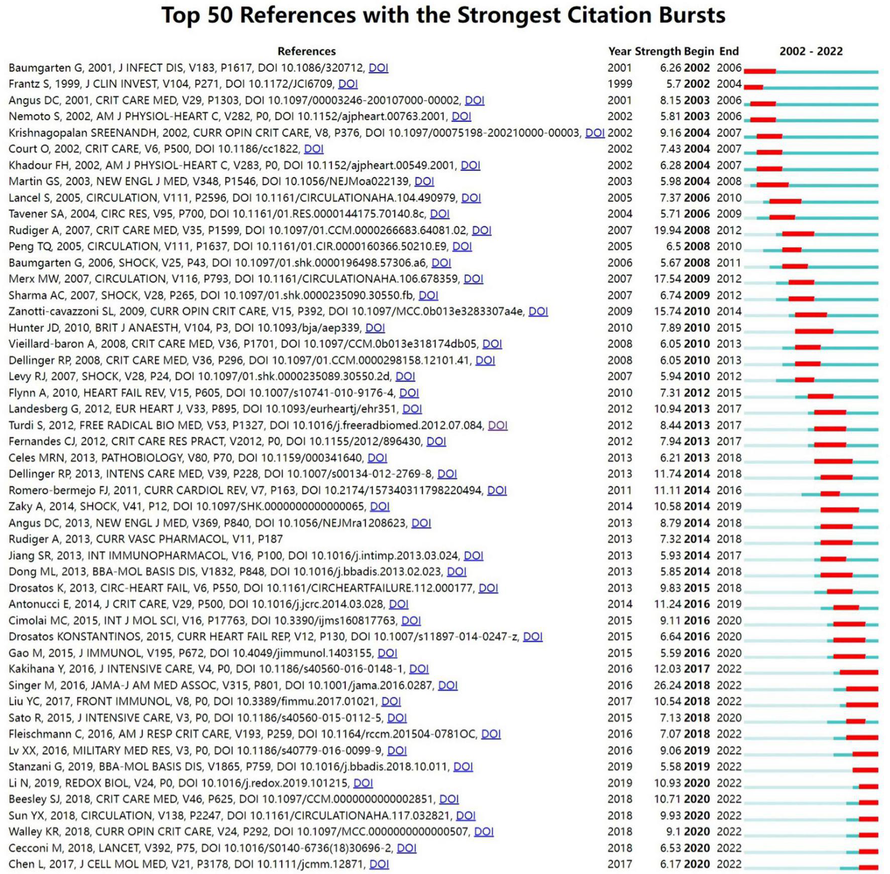 | 2 | Sepsis-Induced Myocardial Dysfunction: Pathophysiology and Management | 50 | 2016 | 0.01 | (29) |