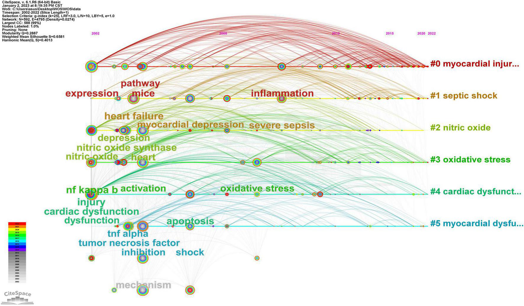 Yao H, Liu S, Zhang Z, Xiao Z, Li D, Yi Z, Huang Y, Zhou H, Yang Y and Zhang W (2023) A bibliometric analysis of sepsis-induced myocardial dysfunction from 2002 to 2022. Front. Cardiovasc. Med. 10:1076093. doi: 10.3389/fcvm.2023.1076093