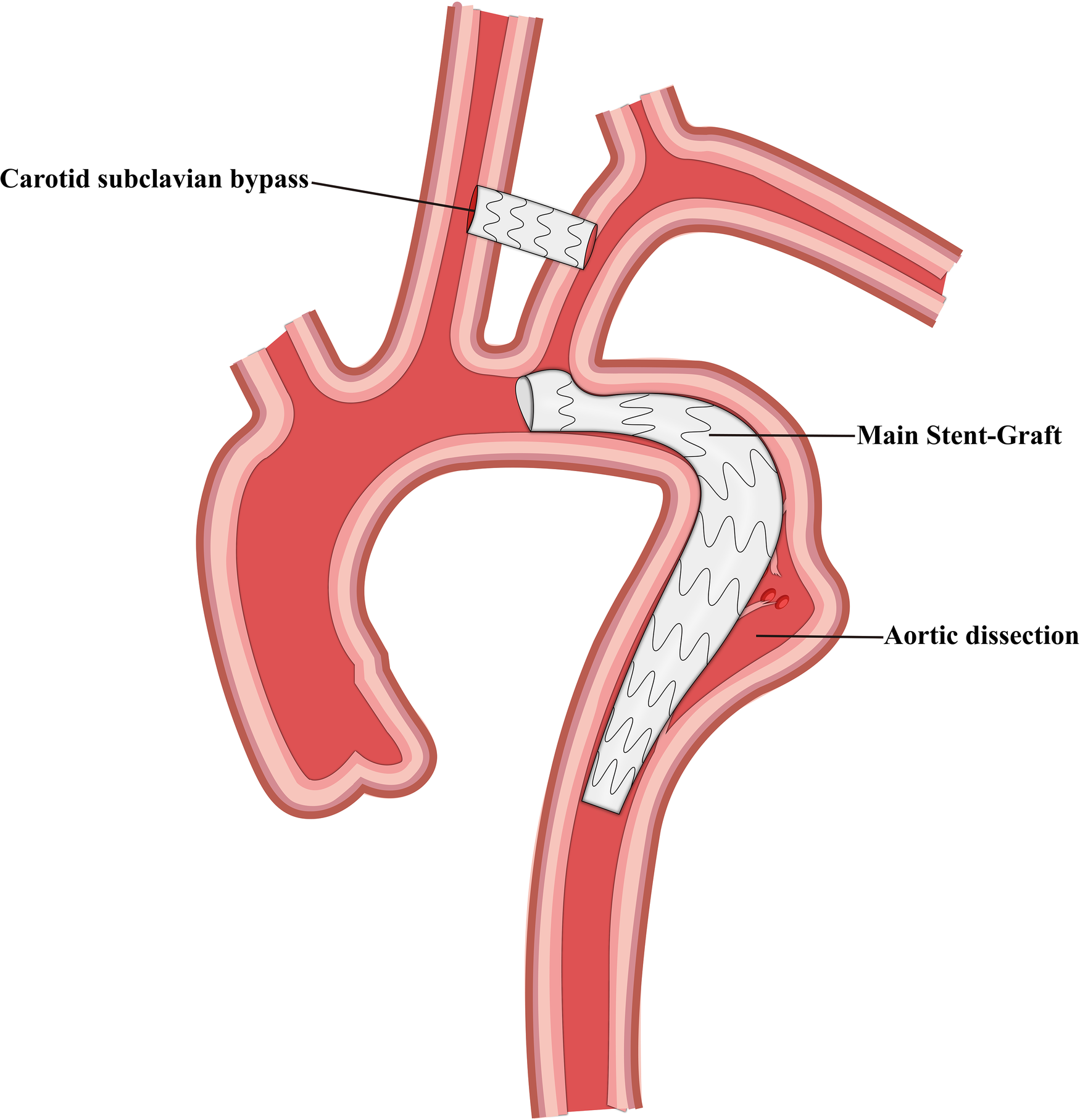 Schematic representation of carotid subclavian bypass and thoracic endovascular aortic repair.