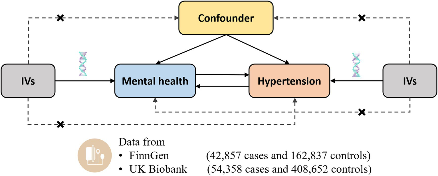 Approximately, 1.2 billion people worldwide suffer from hypertension (1), which is an important risk factor for stroke, ischemic heart disease, and kidney disease. Although many observational studies have indicated that psychosocial factors may contribute to hypertension (2–4), these findings may be subjected to incomplete adjustment for confounding factors and divergent definitions of mental health, which therefore hinders the causal inference in these associations. Furthermore, as patients with hypertension often have mental health morbidities (5), it appeared to be difficult to diminish reversal causality in observational studies.