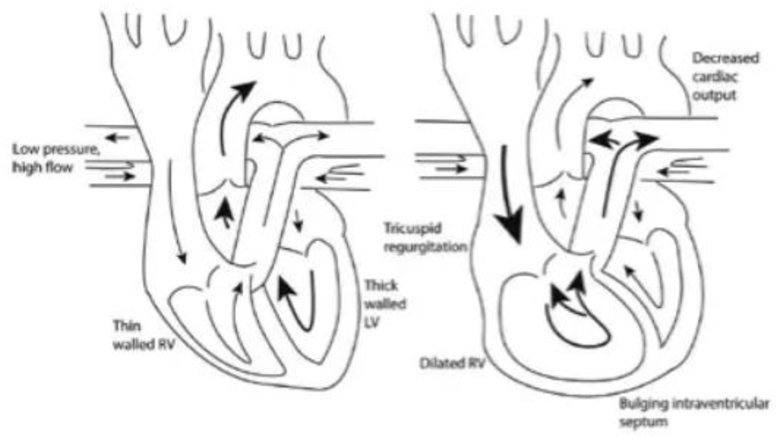 Pathophysiology and structural heart disease associated with pulmonary hypertension