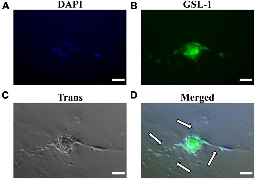 | Anti-isolectin GS-IB4 (GSL-1) AF488-conjugated antibody | Isolectin GS-IB4, Griffonia simplicifolia, Alexa Fluor 488 Conjugated | 20 μg/ml | Invitrogen | I21411 |