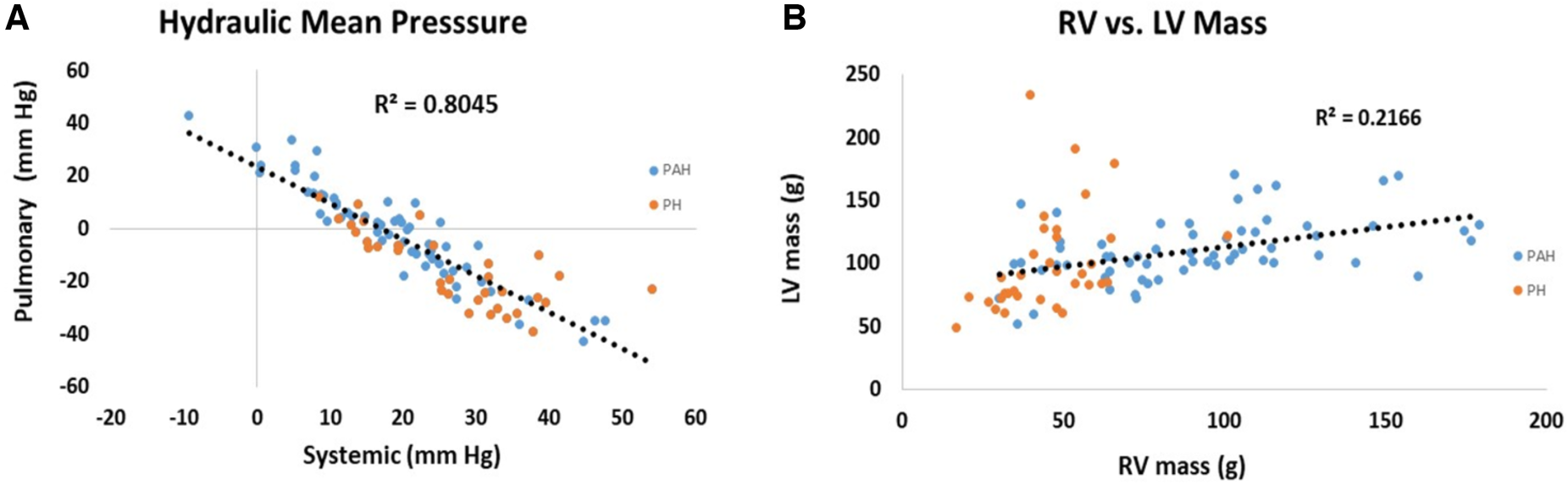 We sought to develop linear models of pulmonary and systemic pressure to provide a universal set of metrics to address key paradoxes that exist in the study of PAH and PH patients (1). Firstly, PAH, a rare, untreatable and progressive disease has dominated the interests of basic, translation and clinical scientist and the pharmaceutical industry. From the time of detection there is a 5–7 year half mortality burden (2). Conversely, PH is common, often secondary to left heart disease, and remains largely undetected until severe and irreversible damage is sustained, leading to a very poor prognosis once discovered (3–6). Secondly, the PAH population remains so small that traditional clinical trials often fail to find any statistically significant impact of treatment, despite the common observation that some patients demonstrate clinically relevant improvement (7). A recent meta-analysis of the use of time to clinical worsening as an end-point in PAH trials noted that while it may lead to shorter and smaller trials, time to clinical worsening cannot be considered as valid surrogates for mortality in PAH trials (8) and further, that there is no widely-agreed upon definition of this metric (9). Additionally, the distinction between PAH and PH can be clinically challenging, with each cohort presenting with similar symptoms (10). This difficulty is further confounded in patients with a combination of pre and post-capillary causes of PH (11). Many of the above difficulties in detection and characterization relate to a lack of access to key variables that adequately assess PA pressure and cardiac status (12–16). In part this is due to the wide variety of hemodynamic indices and concepts employed to characterize PAH and in part due to the difficulty in obtaining key measures of cardiac status such as cardiac outflow reserve. While right ventricular outflow reserve has been shown to be a good prognostic indicator, since it involves a time-consuming and potentially hazardous rest and stress examination, it is rarely performed and even more rarely performed in an ongoing manner during routine clinical assessment (17).