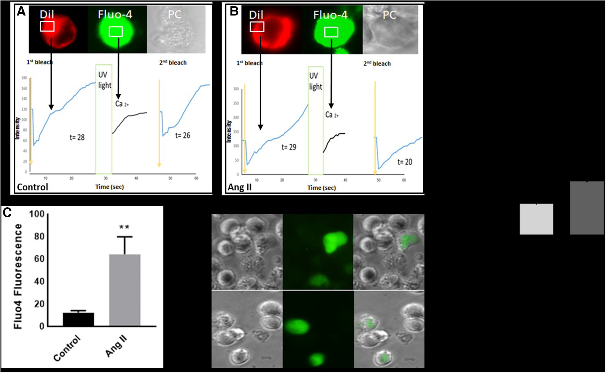 Ang II increases intracellular calcium and fluorescence recovery after photobleaching
