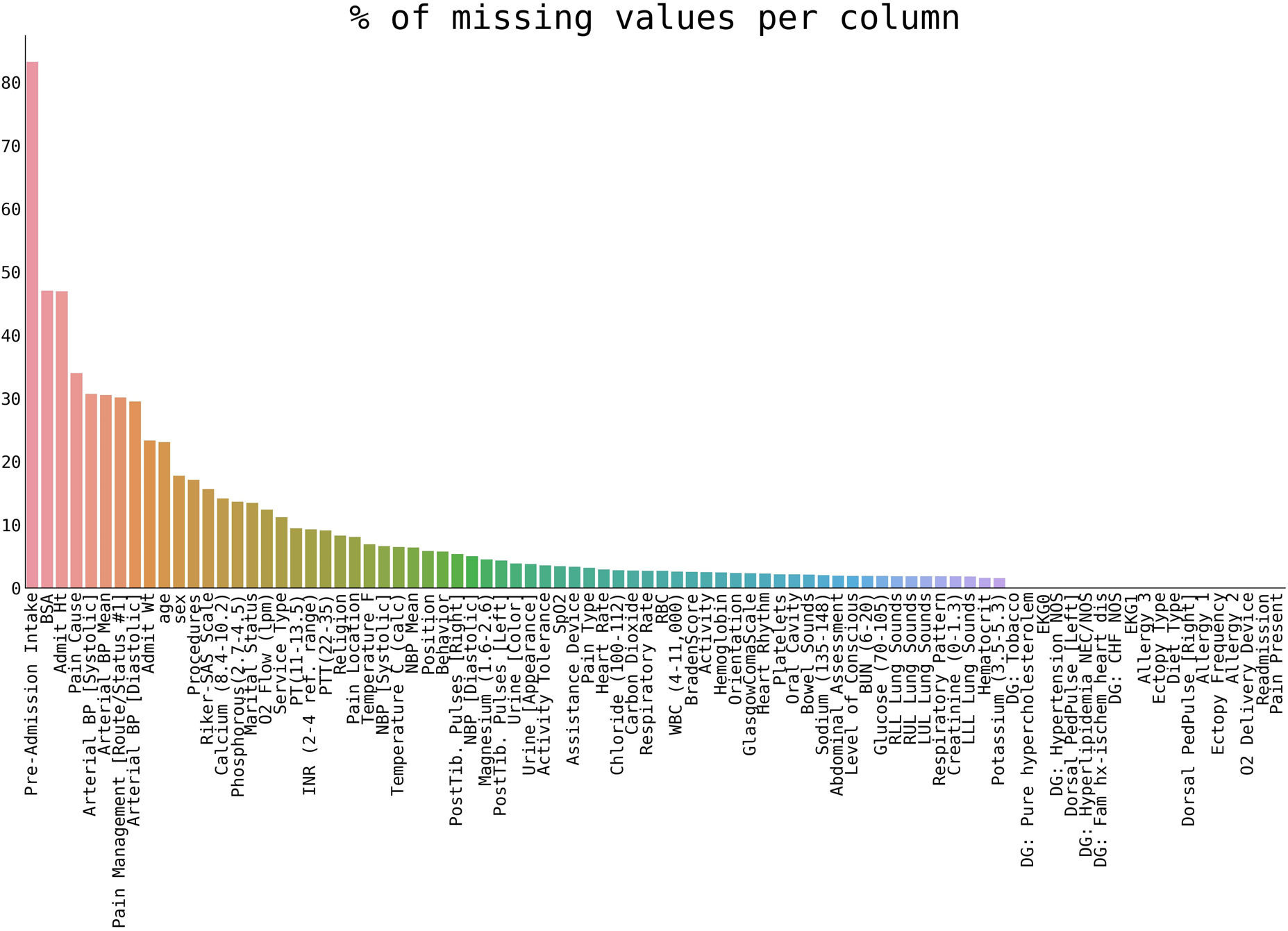 The percentage of missing values per variable in our selection of patients.