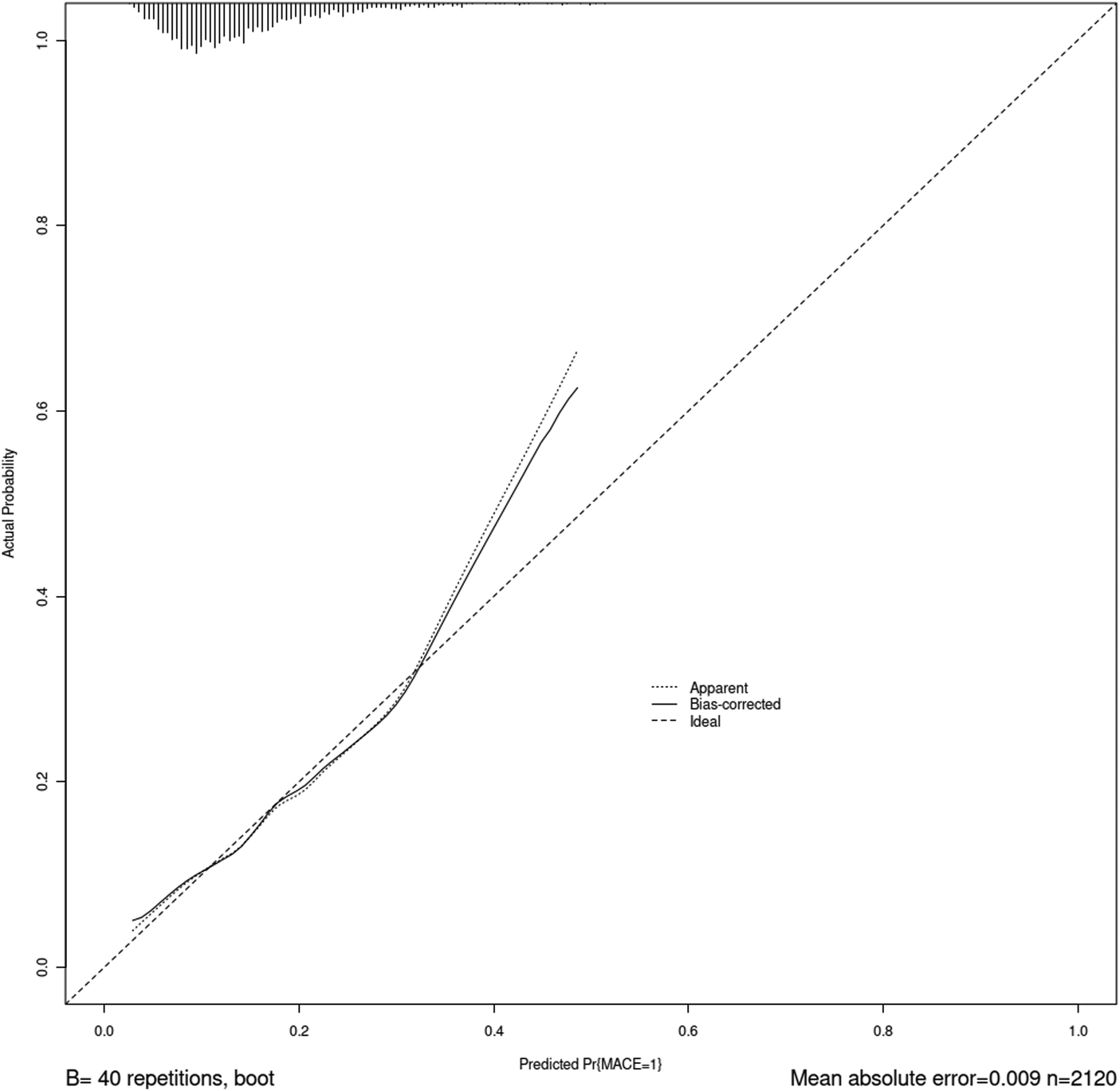The patient characteristics were summarized as follows: Table 1 collects the hospital medical records with MACE events (n = 2,603) and non-MACE events (n = 425). 1,485 (49.04%) of 3,028 patients were male, the average age was 72 years old, and the heart rate was 76 beats per minute. There was no significant difference in sex, heart rate, blood pressure, smoking, drinking history, D-dimer, triglyceride, high-density lipoprotein, very low density lipoprotein, lipoprotein (a), apolipoprotein B, total bile acid, and serum homocysteine between MACE group and non-MACE group. The comparison of each variable were shown in Table 1.