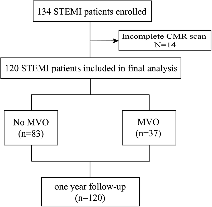 In the present work, CMR was used to confirm the presence of MVO and IMH, and to study myocardial function, IS, left ventricular volume. The objective of this study was to investigate the association between GSDMD in serum post-reperfusion and microvascular injury confirmed by CMR, and investigate the prognostic value of GSDMD as well as CMR parameters in post-reperfusion STEMI patients.