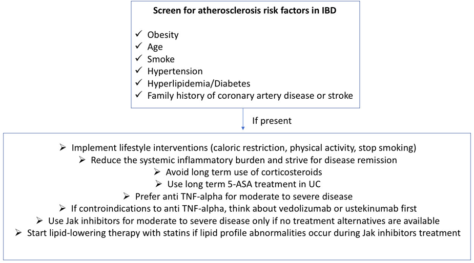 Recommendations for the management of atherosclerotic cardiovascular risk in IBD.