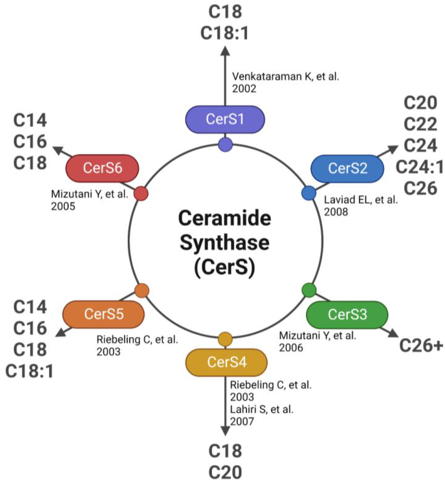Ceramide synthase (CerS) substrate selectivity.