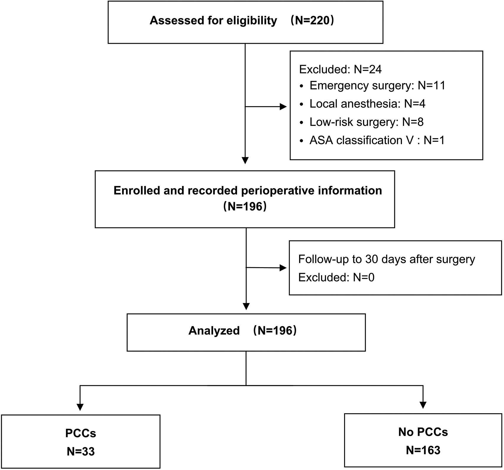 Flow chart of patient enrollment and analysis. PCCs, perioperative cardiac complications.