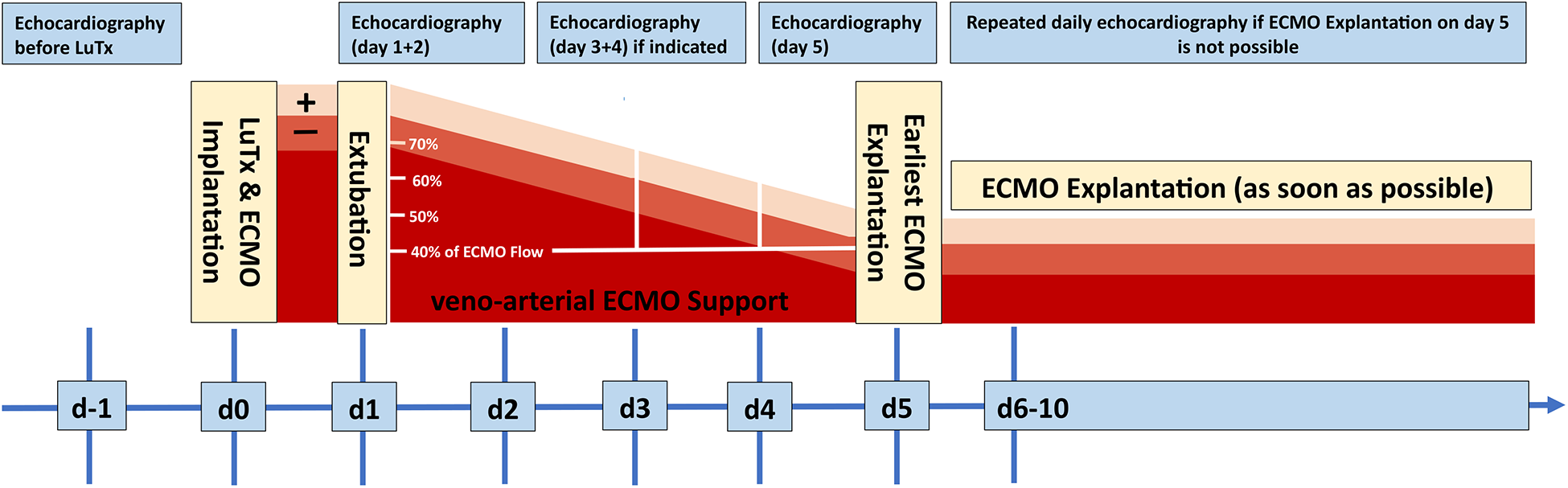 Early complications following LuTx for PAH are often attributed to the increased left ventricular (LV) preload in the setting of chronic LV deconditioning, leading to LV diastolic dysfunction, left atrial hypertension, consecutive severe pulmonary edema, and primary graft dysfunction. Thus, we introduced the concept of default peri-/post-transplant veno-arterial extracorporeal membrane oxygenation (VA-ECMO) in adult patients with severe PAH undergoing LuTx at our center in 2010 (11).