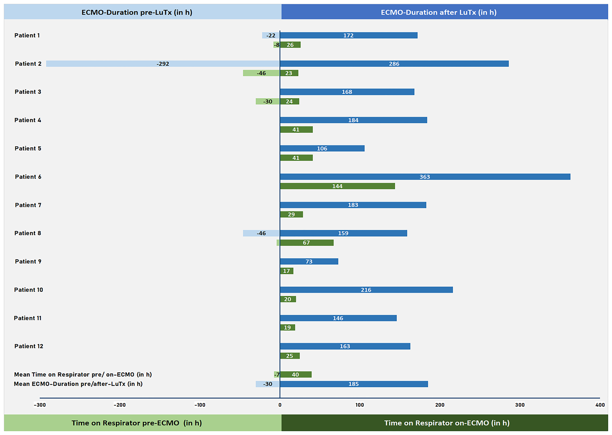 | VA-ECMO duration pre-LuTx – hours, n = 3 | 30 (22–292) |