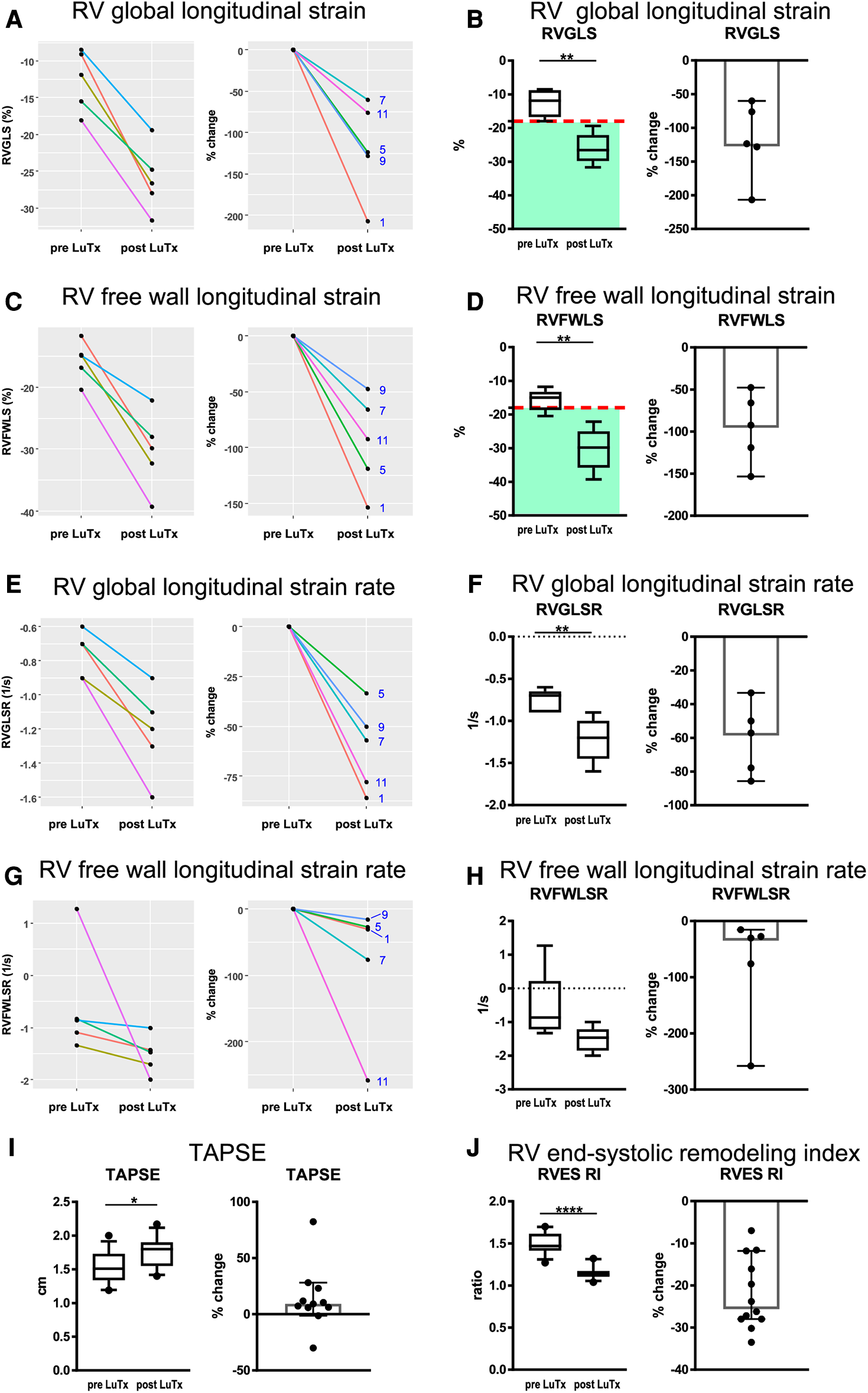 Abbreviations CLAD, chronic lung allograft dysfunction; CPB, cardiopulmonary bypass; FEV1, forced expiratory volume in one second; IPAH/HPAH, idiopathic/heritable pulmonary arterial hypertension; LuTx, lung transplantation; LV, left ventricle; LVLS, left ventricular longitudinal strain; PAH-CHD, pulmonary arterial hypertension associated with congenital heart disease; PVD, pulmonary vascular disease; PVOD/PCH, pulmonary veno-occlusive disease/pulmonary capillary hemangiomatosis; RV, right ventricle; RVAWD, right ventricular anterior wall diameter (in diastole); RVEDD, right ventricular end-diastolic diameter; RVH, right ventricular hypertrophy; RV/LV end-systolic ratio; ratios of inner diameters of RV over LV in end-systole; RVEF, right ventricular ejection fraction; RVFWLS, right ventricular free wall longitudinal strain; RVFWSR, right ventricular free wall longitudinal strain rate; RVGLS, right ventricular global longitudinal strain; RVGLSR, right ventricular global longitudinal strain rate; VA-ECMO, veno-arterial extracorporeal membrane oxygenation.