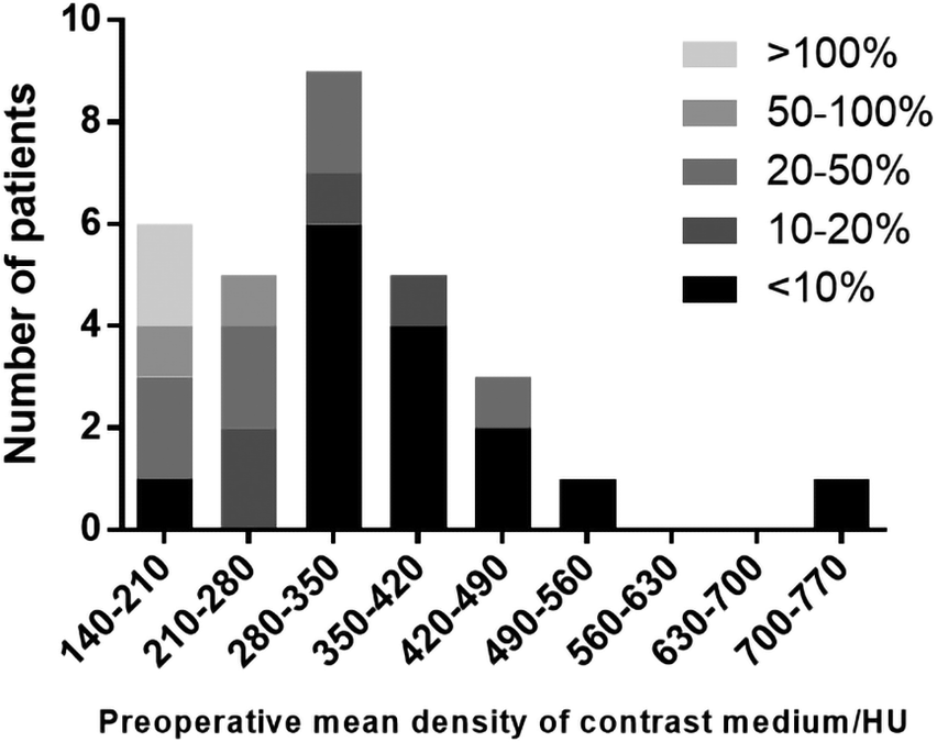 | Preoperative mean density of contrast medium | −0.698 | <0.001 |