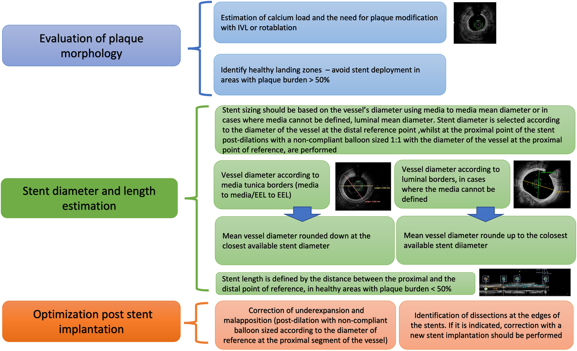 Post-stenting, intravascular imaging can reveal areas of stent underexpansion, malapposition, dissection or incomplete lesion coverage that will likely lead to adverse events if they are left untreated. Stent underexpansion and malapposition are treated with post-dilatations with non-compliant balloons, whilst dissection or incomplete lesion coverage require further stenting.