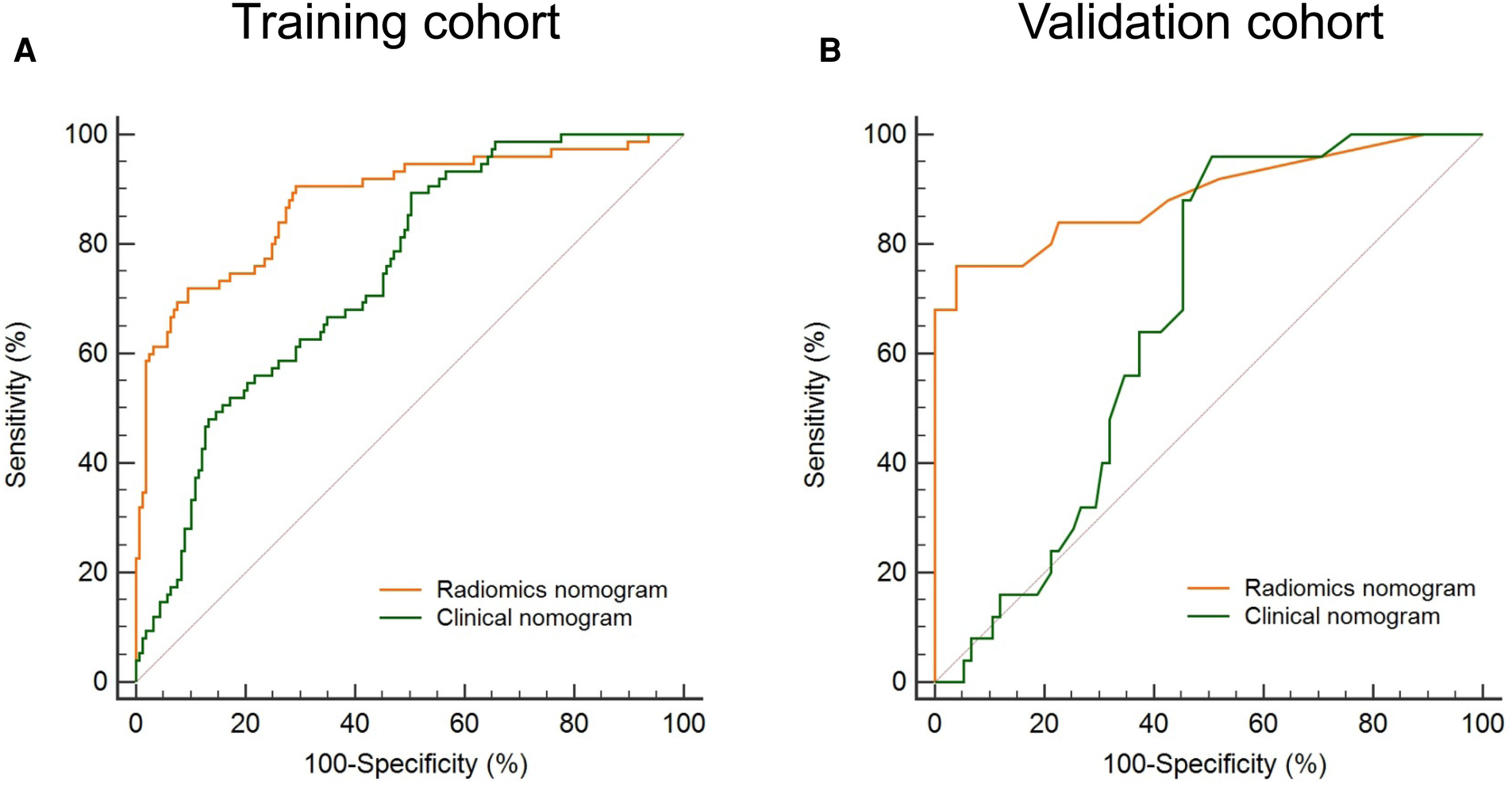 In the assessment of model performance, the receiver operating characteristic (ROC) curve was employed and the area under the curve (AUC) was utilized to evaluate the model discrimination. Comparisons between AUCs in the nomograms with and without the rad score were performed using Delong's test to assess the incremental predictive power of radiomics. The goodness of fit was evaluated by the calibration curve along with the Hosmer–Lemeshow (HL) test. Decision curve analysis (DCA) was utilized to evaluate the clinical net benefits of various threshold probabilities, thereby determining the clinical applicability of the model. Statistical processing of data was performed by using IBM SPSS Statistics (v 22.0, SPSS Inc.), MedCalc (v 19.2.1), R package (v 4.2.1), and Python (v 3.7.1).