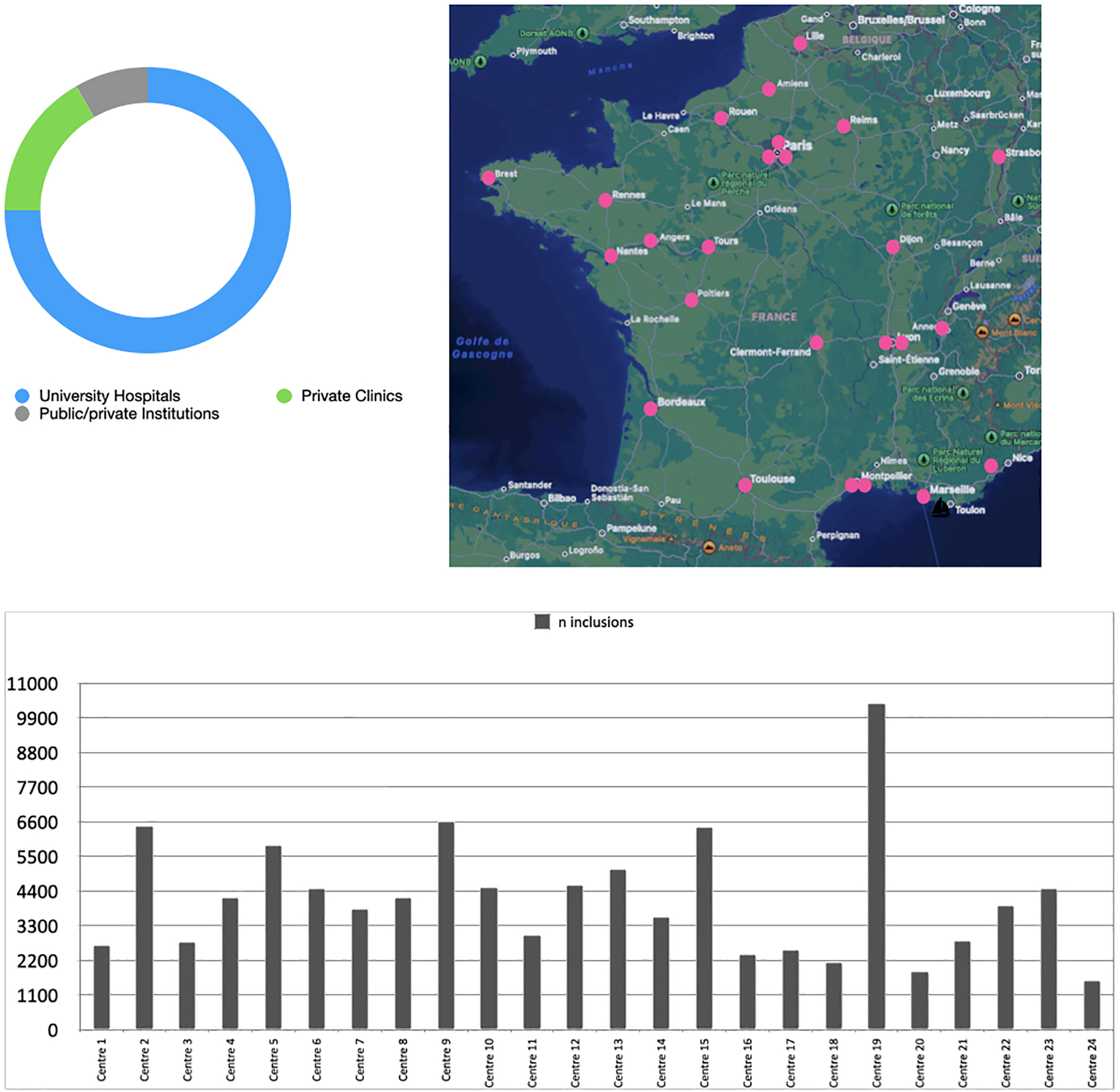 Patients in EPICARD undergoing SAVR from 2007 to 2022 were included from 22 participating public or private centers chosen to represent a balanced representation of centre sizes and geographical discrepancies (Figure 1). Patients aged under 19 years-old or patients with associated pathology of the aorta (aneurysm or dissection) and requiring a vascular aortic prosthesis were excluded. Comparisons were made amongst centers, valve choice, implant date range, and patient age.