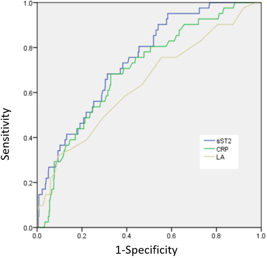 LA, left atrium; CRP, C-reactive protein; sST2, soluble ST2; TIMI, thrombolysis in myocardial infarction.
