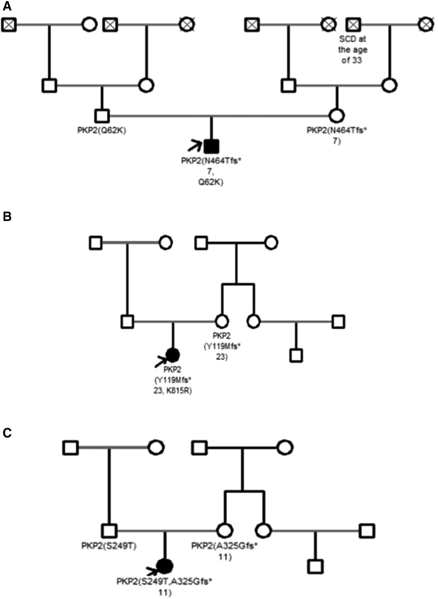 | Genotype of parents | n/a | Mother PKP2 Father PKP2 | n/a | n/a | n/a | n/a | n/a | n/a | n/a | Mother PKP2 | Mother PKP2 Father PKP2 | n/a | n/a |
