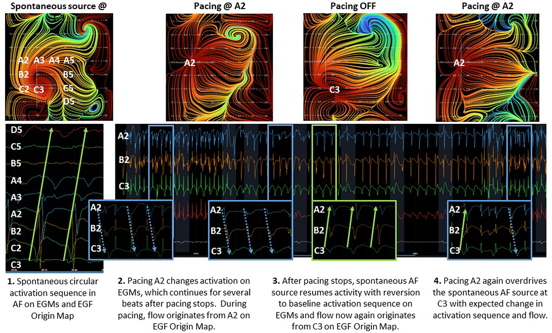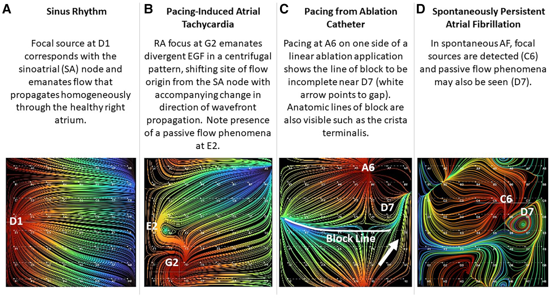 Mapping algorithms have thus far been unable to localize triggers that serve as drivers of AF, but electrographic flow (EGF) mapping provides an innovative method of estimating and visualizing in vivo, near real-time cardiac wavefront propagation.