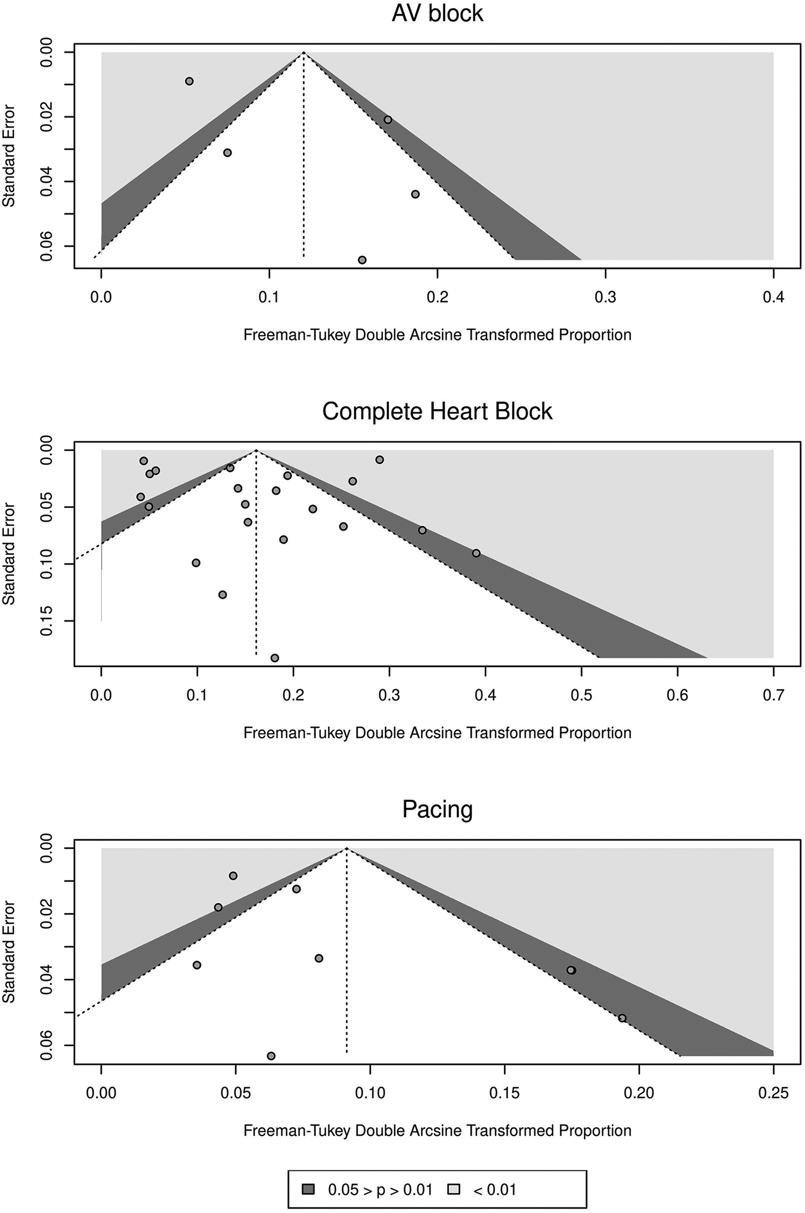 It is worth mentioning that some studies also reported pacemaker implantations for indications other than post-CABG AVB, such as sinus bradycardia, bundle branch block, atrial fibrillation, and cardiac arrest. To maintain the focus and integrity of our analysis, we only entered data related to pacemakers that were specifically indicated for post-CABG high-grade AVB. Furthermore, while some included studies did not exclude patients with pre-existing AVB, and some did not explain whether they did, all of the studies clearly stated that they were reporting on newly developed AVBs after CABG. Due to the limited availability of studies that exclude patients with pre-existing AVB, we deemed it appropriate to include all relevant studies that reported post-CABG AVB.