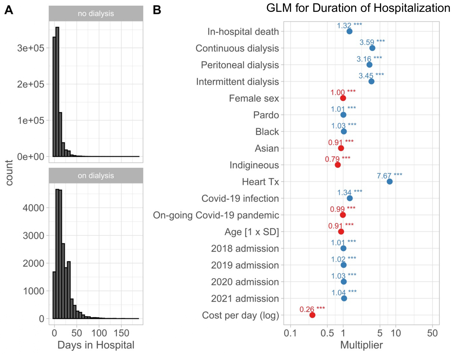 In total, 910,128 hospitalizations due to heart failure were identified in the SIHSUS registry between April 2017 and August 2021, of which 106,383 (11.7%) resulted in in-hospital death. Renal replacement therapy (required by 8,179 non-survivors [7.7%] and 11,496 survivors [1.4%, p < 0.001]) was associated with a 56% increase in the risk of death in the univariate regression model (HR 1.56, 95% CI 1.52 -1.59), a more than threefold increase of the duration of hospitalization, and a 45% or greater increase of cost per day. All forms of renal replacement therapy remained independently associated with in-hospital mortality in multivariable analysis (intermittent hemodialysis: HR 1.64, 95% CI 1.60 -1.69; continuous hemodialysis: HR 1.52, 95% CI 1.42 -1.63; peritoneal dialysis: HR 1.47, 95% CI 1.20 -1.88).