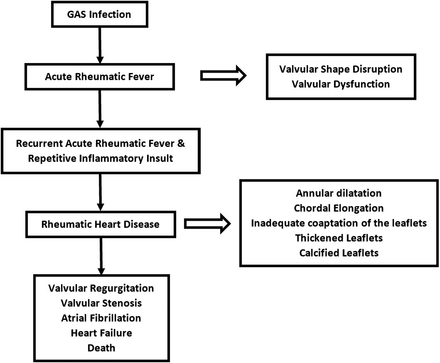 Rheumatic heart disease has been recognized for more than two centuries. Scientists had previously attempted to establish a link between manifestations of rheumatic fever (RF) and the presence of RHD. Unfortunately, the technology was not enough to properly investigate the pathophysiology concept of the disease. In 1904, Aschoff presented the first description of a distinct RHD lesion (21, 22). He was the first to report the pathological aspects of RHD by describing a nodule identified in the heart of patients with RHD, which would be later known as the Aschoff body. Given that the Aschoff body is derived from lymphatic vessels of the heart, he stated that the damage to the myocardium was secondary to the specific lesion in the connective tissue rather than due to destruction by what was previously described as rheumatic poison (21). This updated understanding confirmed the pathophysiology theory that RHD is the result of an exaggerated immune response to specific bacterial epitopes (21, 22).